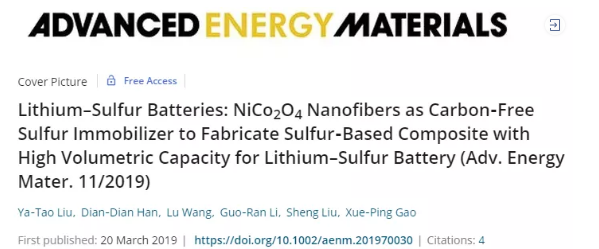 用户论文> 钴酸镍构筑锂硫电池用高体积比容量的硫基复合材料