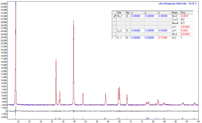 三元材料的衍射图谱和结构精修